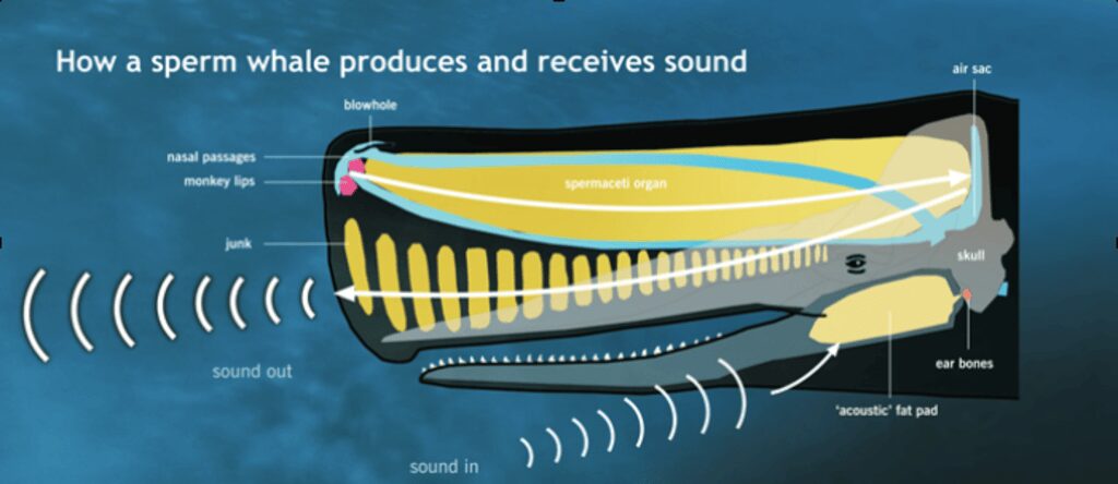 Sperm whales and other cetaceans live in a world where sound replaces sight, where life depends on vibrations, and silence or noise can mean survival or death.