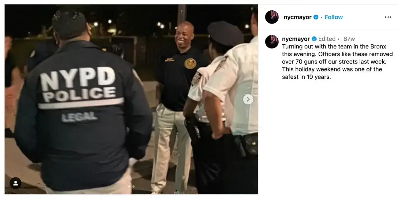 At the time, Adams was a 38-year-old NYPD lieutenant and leader of a group of Black officers that spoke out against police brutality.