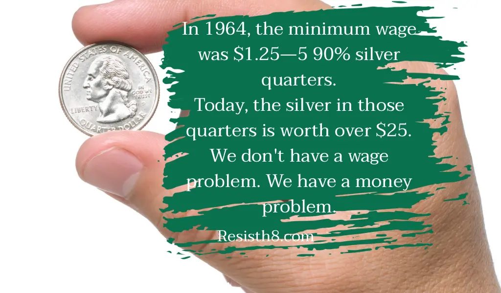 In 1964, the minimum wage stood at $1.25 per hour. That’s the equivalent of five silver U.S. quarters. Remember, they were 90 percent pure silver.
