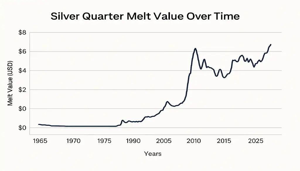 Today, the melt value of a 1964 silver quarter is $5.13.