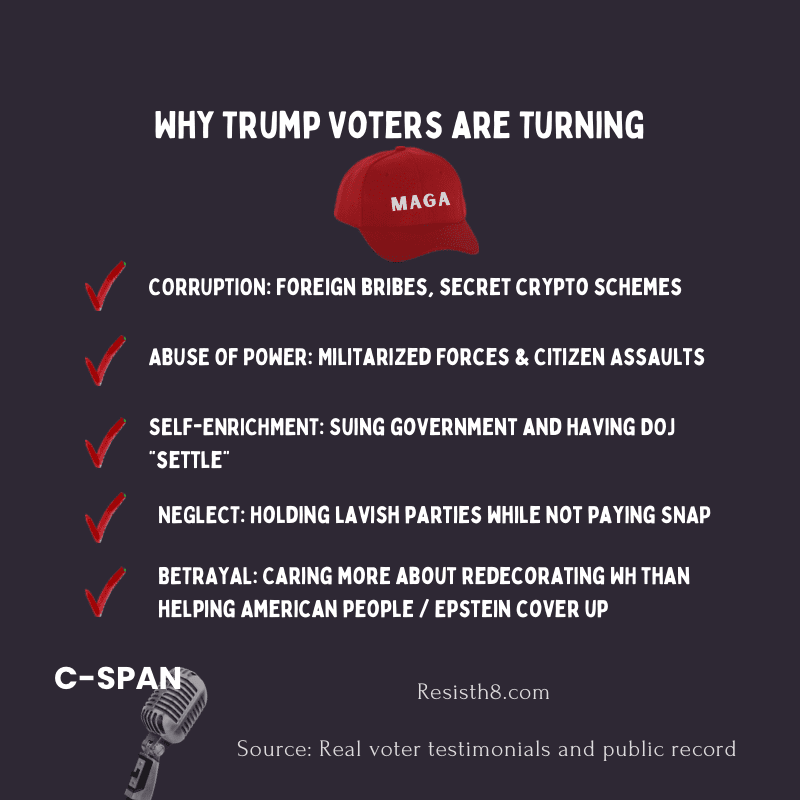 The New Mexico caller isn’t alone. As the list of betrayals grows, it becomes harder for even the most loyal supporters to look away. If you’re wondering why MAGA is turning, look at the reality of the current administration:
