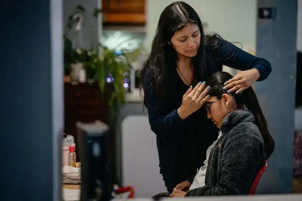 Ruano’s day usually starts early, and by 6:15 a.m., her daughters Paola and Eli, 9, are in the dining room, ready for their mom to brush their hair. Back in El Salvador, Ruano didn’t think she would ever have children. The world seemed dangerous and broken, and life was expensive. “With the cost of living, I always thought, how?” she said one morning while brushing Eli’s hair and finishing it with a braid.
