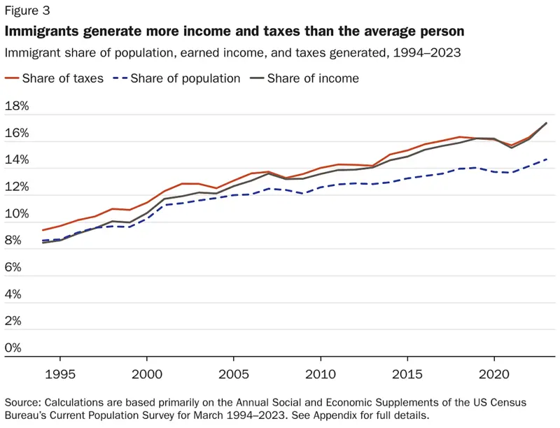 A major new study from the Cato Institute — a libertarian think tank, not a progressive one — found that immigrant workers generated a $14.5 trillion fiscal surplus for U.S. government budgets between 1994 and 2023.