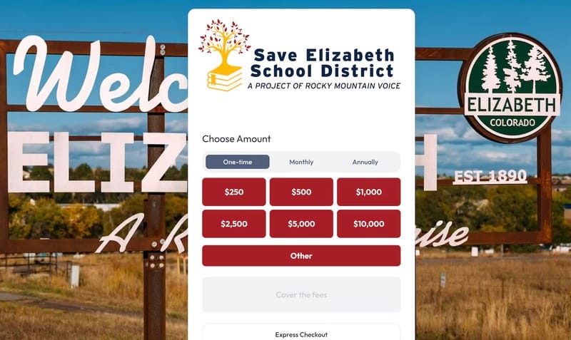 While school district fundraisers for things like classroom supplies or field trips are common, asking parents and the public for money to pay lawyers is not. The heading on the donation page hosted by Ganahl’s group reads “Save Elizabeth School District,” with buttons underneath suggesting donations ranging from $250 to $10,000.